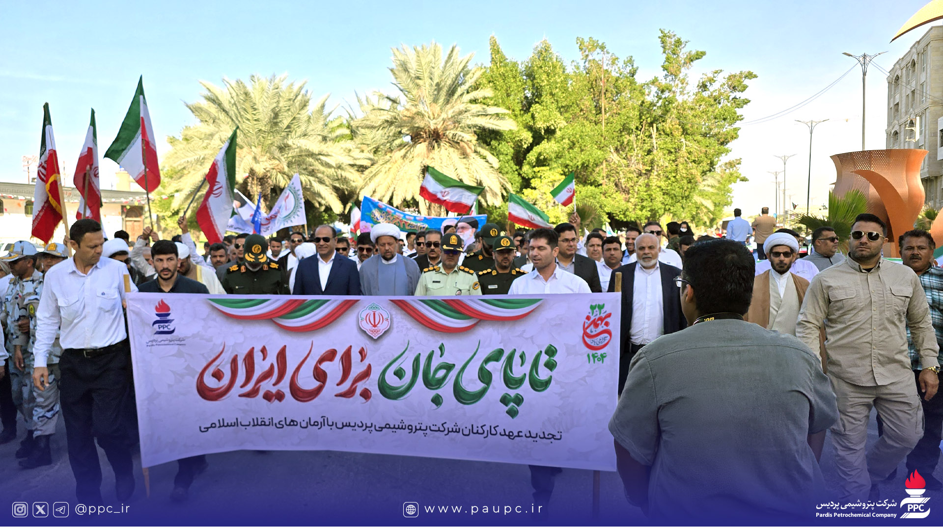 از خط تولید تا صحنه همبستگی؛ حضور پرشور کارکنان پتروشیمی پردیس در راهپیمایی ۲۲ بهمن عسلویه