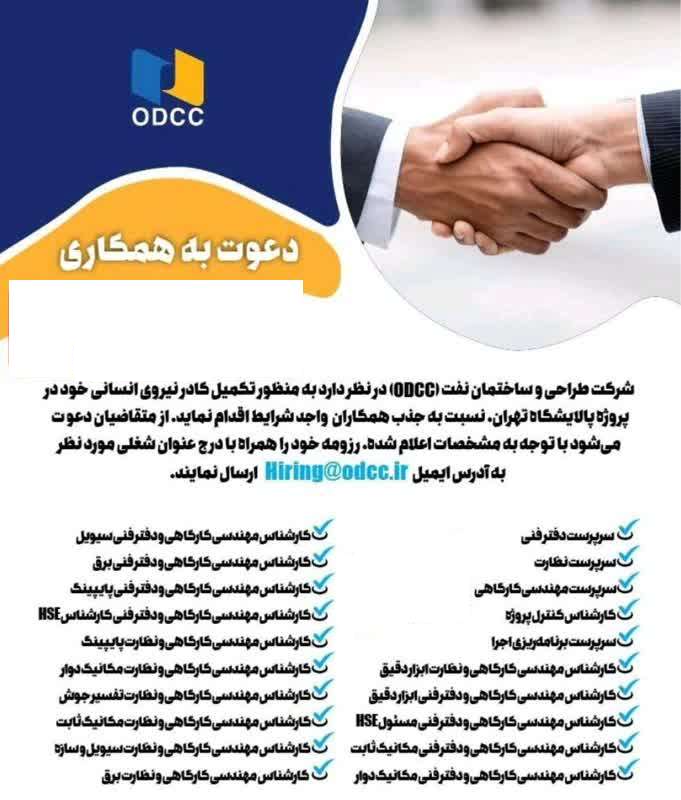 شرکت طراحی و ساختمان نفت در نظر دارد به منظور تکمیل کادر نیروی انسانی خود در پالایشگاه نفت تهران نسبت به جذب و استخدام همکاران واجد شرایط اقدام نماید.