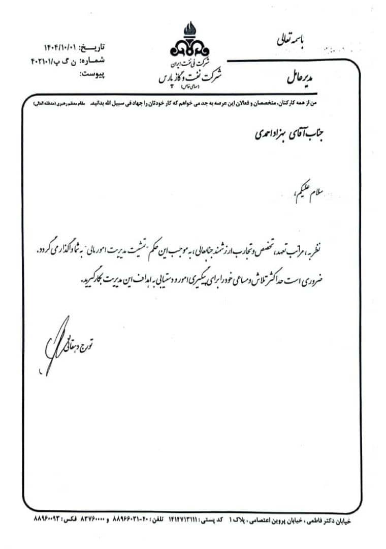 با حکم مدیرعامل شرکت نفت و گاز پارس، بهزاد احمدی عهده‌دار مسئولیت امور مالی این شرکت شد؛ تغییری مدیریتی که در راستای تقویت ساختار مالی و ارتقای کارآمدی در مجموعه POGC صورت گرفته است.