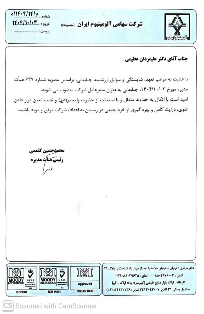 علیمردان عظیمی کیست؟ مدیرعامل جدید آلومینیوم ایران