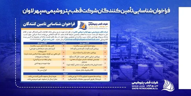 فراخوان شناسایی تأمین کنندگان شرکت قطب پتروشیمی سپهر لاوان
