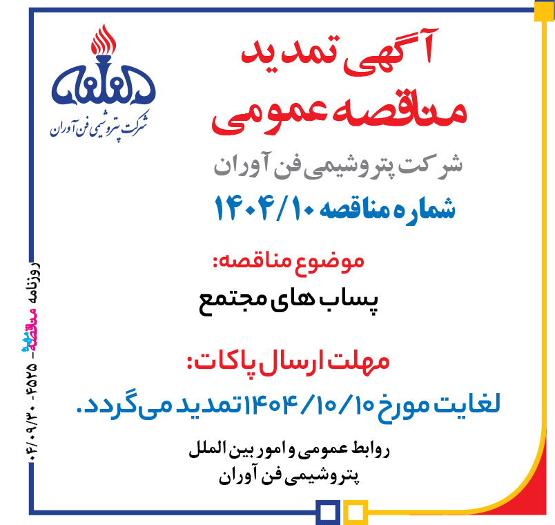 آگهی تمدید مناقصه‌عمومی شرکت پتروشیمی فن آوران