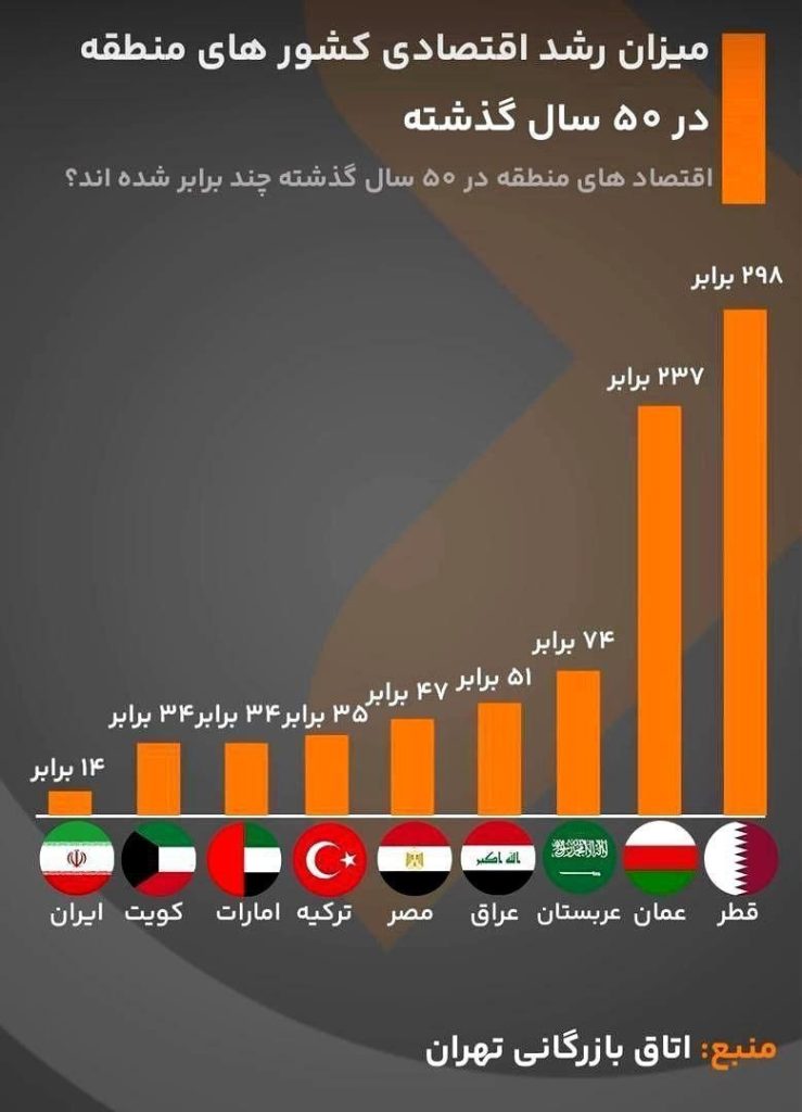 میزان رشد اقتصادی کشورهای منطقه در ۵۰ سال گذشته
