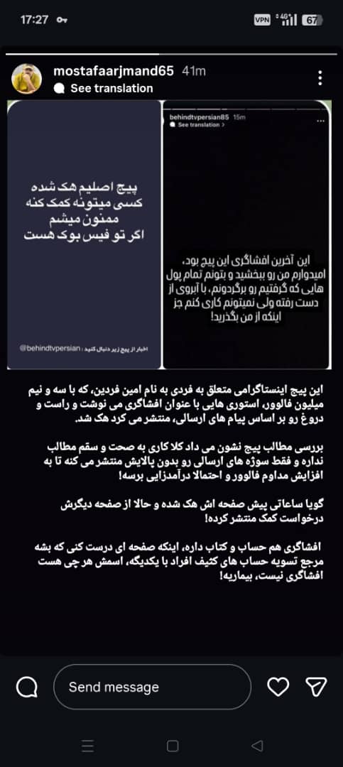 به تازگی این شخص معلوم الحال وارد فاز تازه‌ای از تخریب و به گفته‌ی خودش افشاگری شده است.