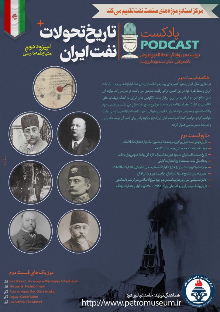 دومین قسمت از مجموعه پادکست «تاریخ تحولات نفت ایران» با عنوان «امتیازنامه دارسی» به همت مرکز اسناد و موزه‌های صنعت نفت منتشر شد.