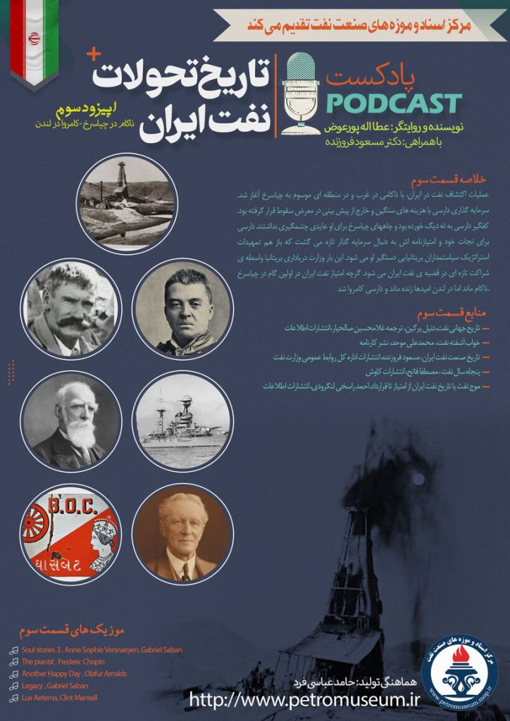 سومین قسمت از مجموعه پادکست «تاریخ تحولات نفت ایران» با عنوان «ناکام در چیاسرخ - کامروا در لندن» به همت مرکز اسناد و موزه‌های صنعت نفت منتشر شد.