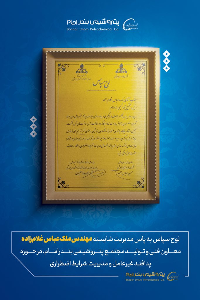 در ارزیابی سالانه پدافند غیرعامل و مدیریت بحران منطقه ویژه اقتصادی پتروشیمی ماهشهر، پتروشیمی بندرامام موفق به کسب دو عنوان برتر شد.