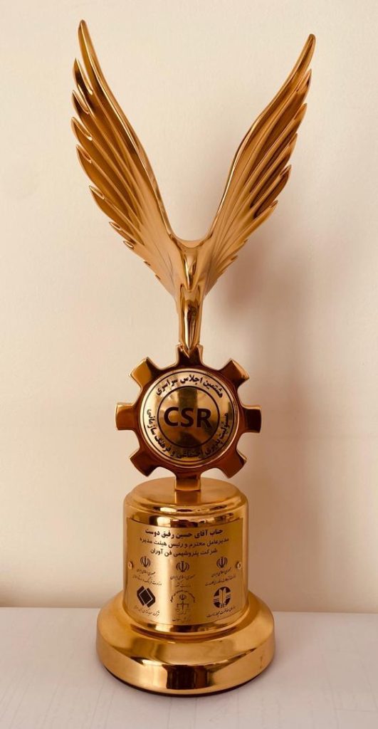 در این مراسم، دکتر حسین رفیقدوست، مدیرعامل و نایبرئیس هیأتمدیره شرکت پتروشیمی فنآوران، به پاس تلاشهای مستمر این مجموعه در نهادینهسازی رویکردهای توسعه پایدار، تعهد به کاهش اثرات زیستمحیطی و ایفای نقش مؤثر در پیشبرد پروژههای سبز ملی مورد تقدیر قرار گرفت که تندیس و لوح این موفقیت به نمایندگان حاضر ایشان اهدا شد.