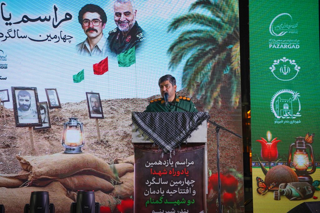 در ادامه این مراسم دکتر شیخان مدیرعامل پازارگاد با اشاره به نقش استان بوشهر در عرصه‌های مختلف ملی و بین المللی گفت: استان بوشهر از دیرباز در دفاع از مرزهای کشور پیشتاز بوده، روزگاری رییس علی دلواری به همراه همرزمانش در مبارزه با استعمار جلوی حضور بیگانگان در کشور ایستاد و روزگاری دیگر شهید نادر مهدوی و همرزمان شهیدش با غیرت ایرانی اسلامی خود در خلیج فارس با استکبار جهانی جنگیدند و این ستاره‌های درخشان در این استان در طول تاریخ درسی بزرگ به ما آموخته‌اند و آن درس مقاومت و ایثار است.