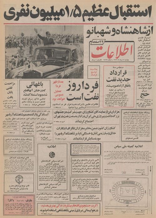 تصویر صفحه نخست روزنامه اطلاعات روز نهم مردادماه سال ۱۳۵۲