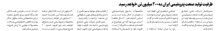 مدیرعامل شرکت ملی صنایع پتروشیمی ادامه داد: ظرفیت تولید صنعت پتروشیمی ایران اکنون حدود ۹۰ میلیون تن است که تا پایان برنامه هشتم توسعه این رقم به حدود ۲۰۰ میلیون تن خواهد رسید و سبد محصولات پتروشیمی ایران متنوع‌تر خواهد شد. وی افزود: حدود ۱۰۰ طرح پتروشیمی در کشور در دست احداث است، بنابراین باید ذخایر نفت و گاز کشور برای تکمیل زنجیره ارزش محصولاتی مانند متانول به‌کار رود و به کاهش خام‌فروشی و ساخت محصولات نهایی با ارزش افزوده بیشتری منجر شود.